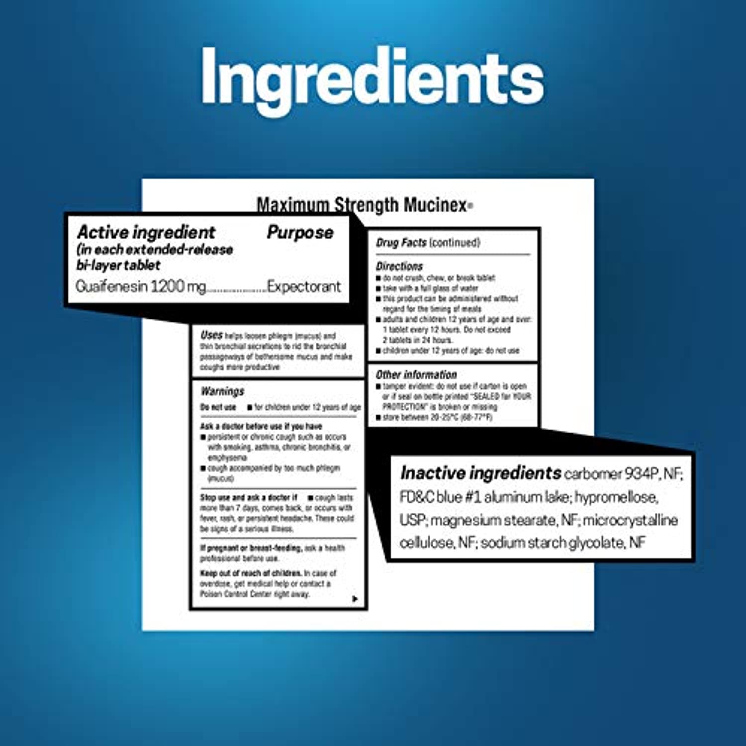 When mucus builds up in your chest, congestion can get in the way of your day. Maximum Strength Mucinex extended-release bi-layer tablets fight bothersome chest congestion for 12 hours so you can focus on your life and forget about congestion.