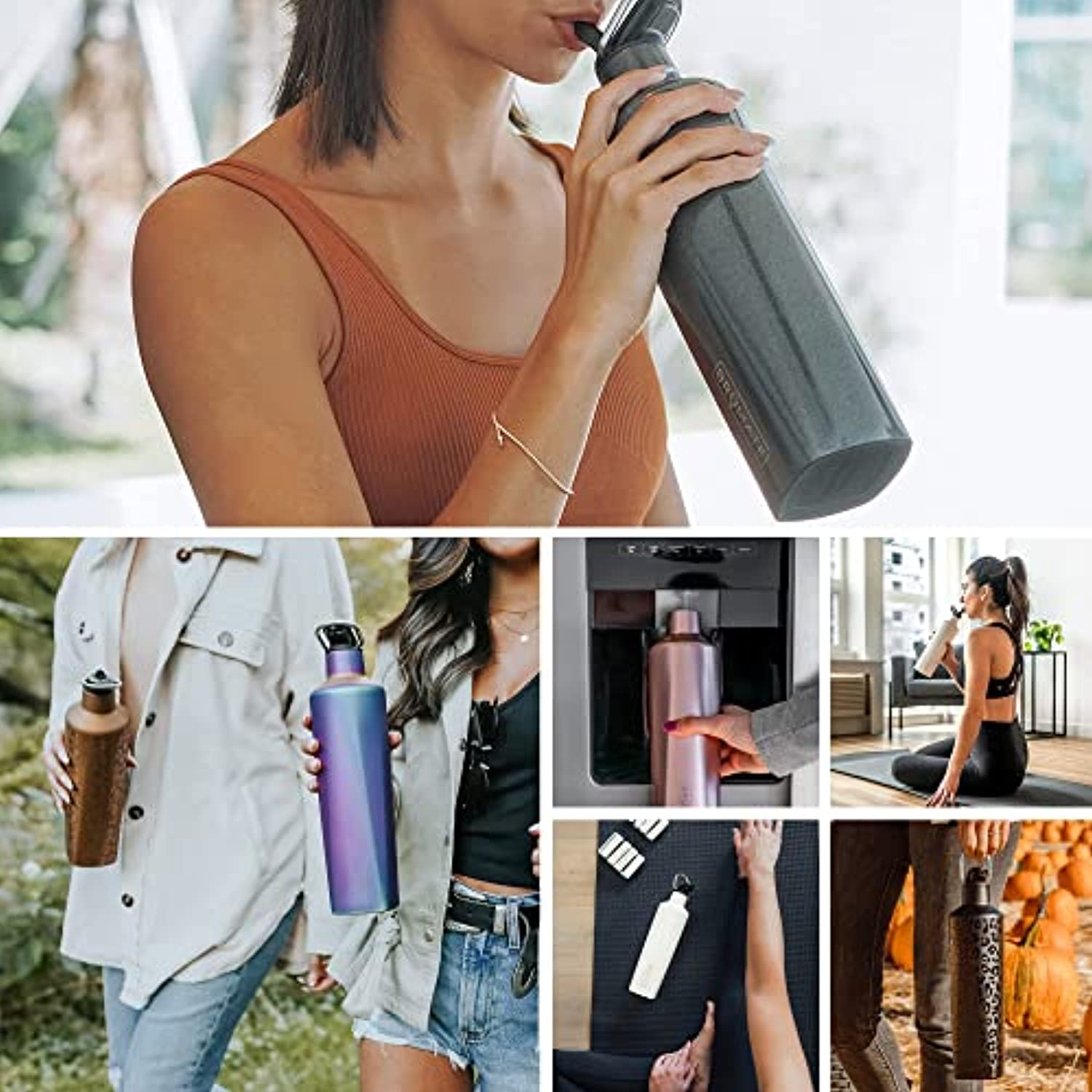 • VERSATILE: Your new go-to, travel, gym, work, or work from home insulated water bottle goes anywhere and everywhere. The high-quality, durable design allows you to toss it in a gym bag or purse and includes an easy-carry loop.