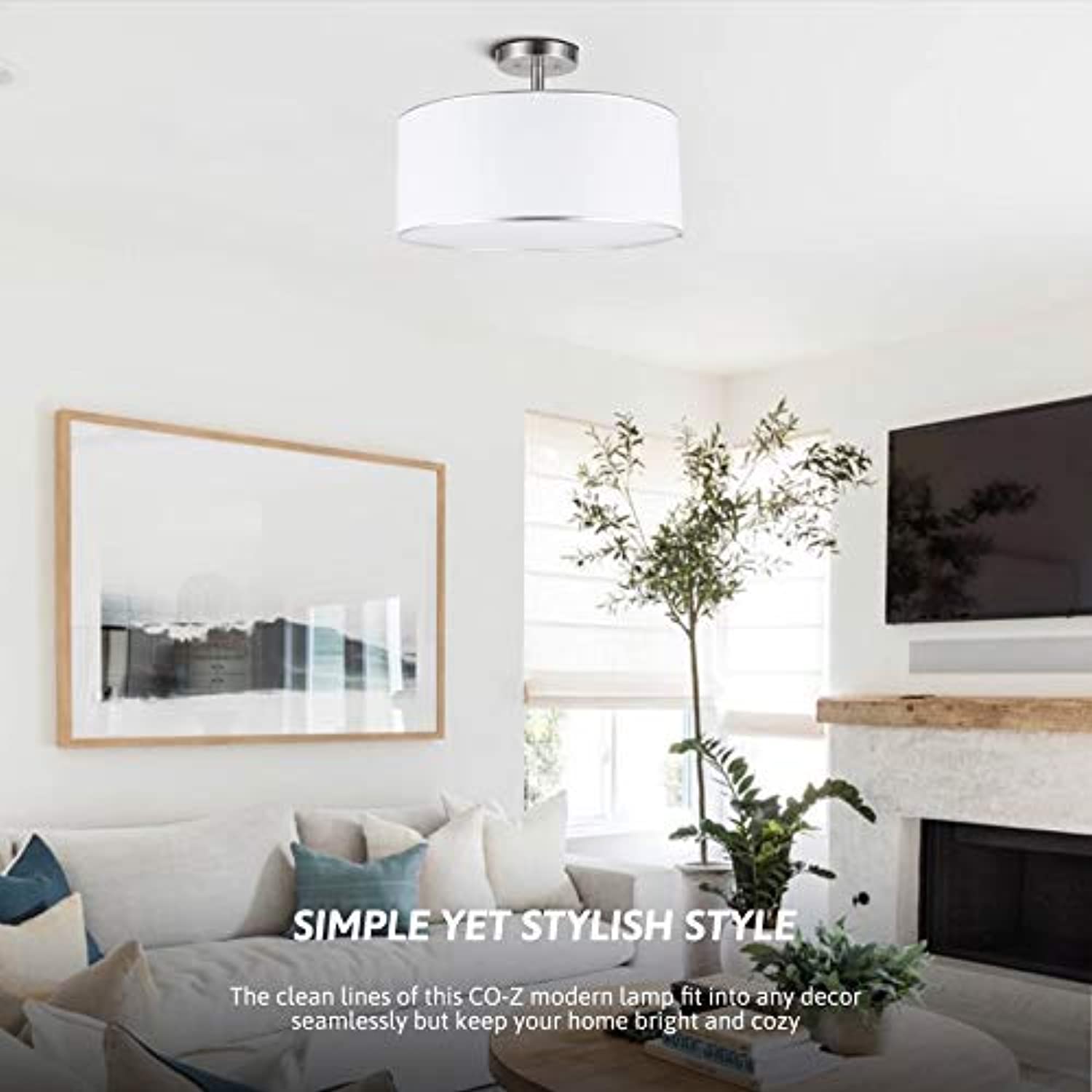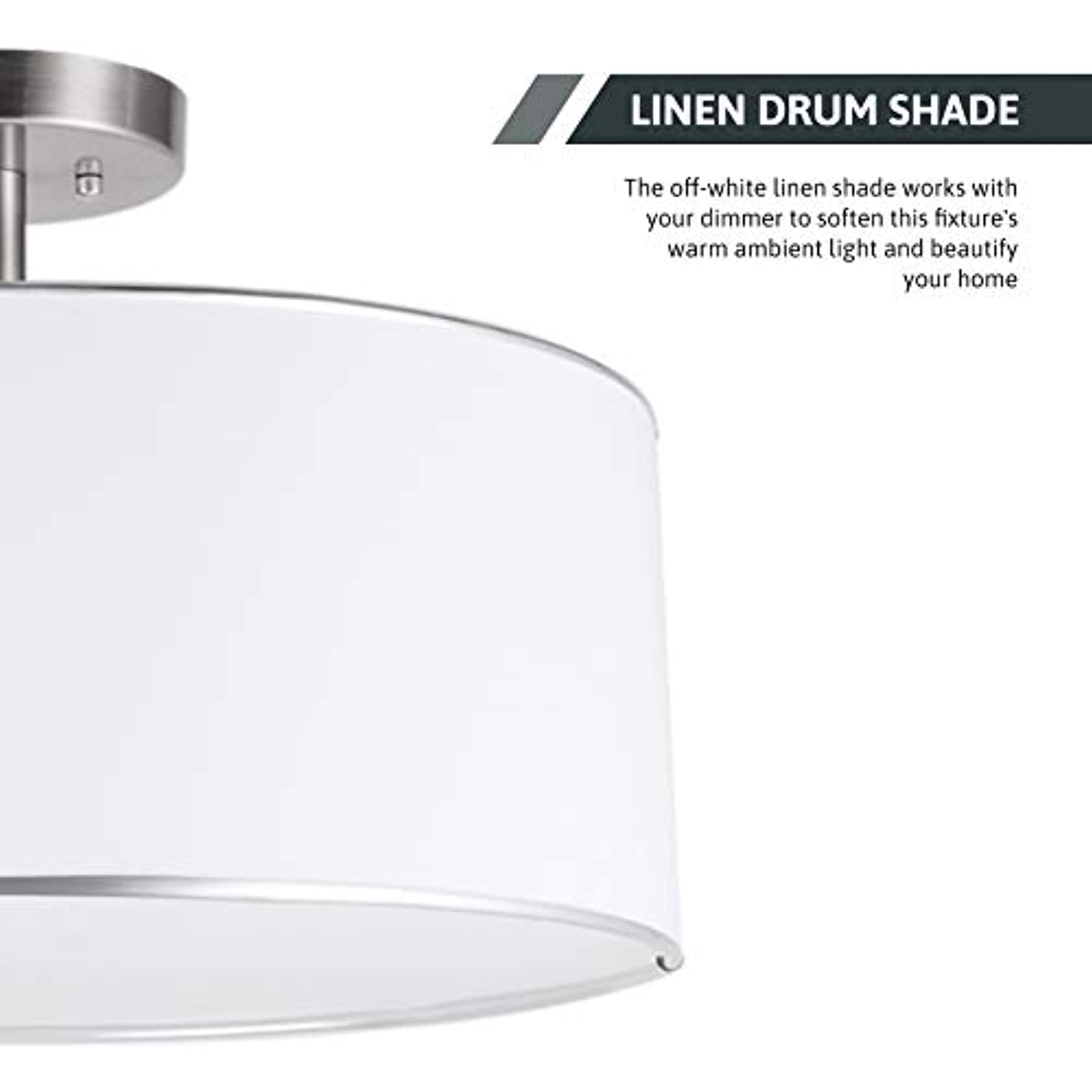Designed with a finely crafted white linen fabric shade, our ceiling light distributes even