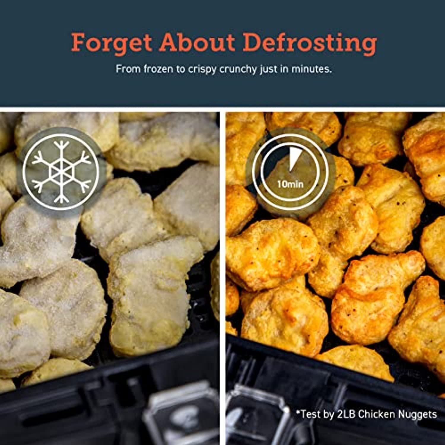 - LARGE CAPACITY: The air fryer's spacious 5.8-quart square baskets can fit a whole 5-pound chicken. Additionally, the corner spaces provide more cooking capacity and flexibility than round designs. Cook the perfect amount of food for 3–5 people in one go.