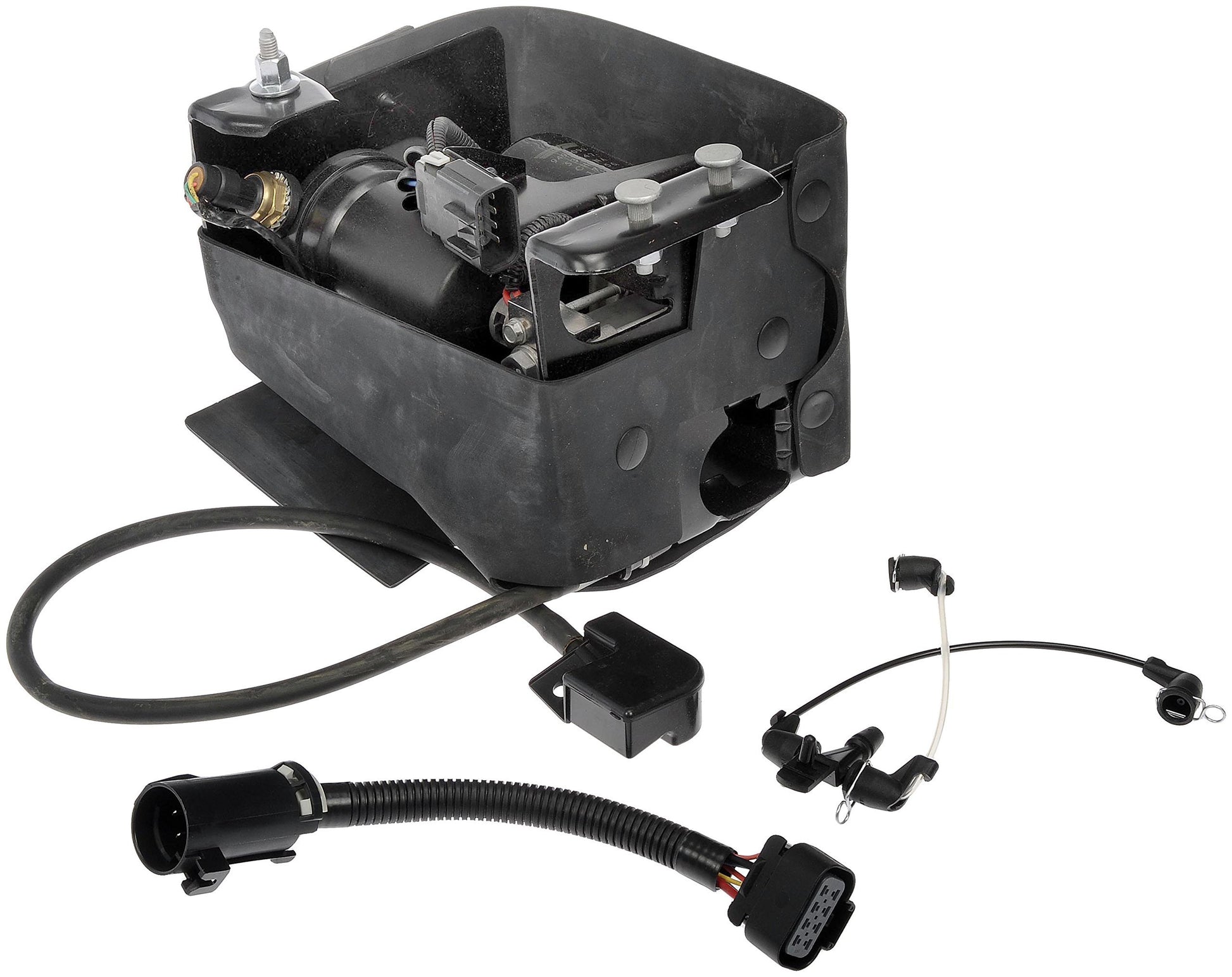 Rigorously tested for sustained, secure performance by a team of product and quality engineers, the Dorman Air Suspension Compressor eliminates excessive suspension sag and restores vehicle handling and safety. This is an exclusive OE FIX with thermal protection software to prevent motor burnout and a weather-resistant connector and membrane to address the original failure mode. It is available as a complete assembly with all new components, including the motor and dryer. Since this part is a direct replacement, the exact fit adds another level of convenience.