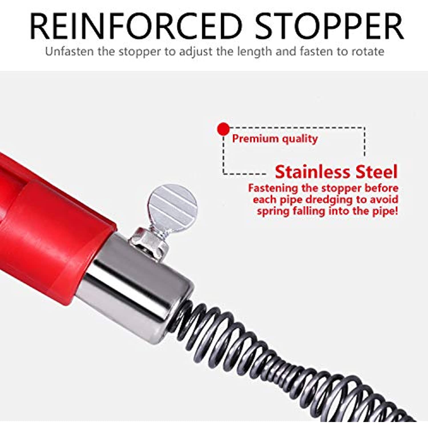 25-FT Drainsoon Professional Plumbing Snake Drain Auger: Best Choice for Removing Sink Clog Before you lose your wits and pour in a (usually ineffective) liquid drain cleaner, turn to the best drain-cleaning tool of all: the sink auger. Why choose our drain auger? 1. It's inexpensive and long-lasting durability for decades of money saving. Many common clogs can be fixed with a sink snake, you don't have to call a plumber and pay a hefty fee. 2. It's easy to use and store requires no chemicals. This drain cleaning tool is great for beginner and master plumbers as well. It is a great tool for every household. The package comes with a detail User Guide, which helps you handle the sink clog easier. 3. Multiple uses for tackling most of the clogs. Ideal for kitchen, bathroom, utility sinks, bathtubs, and shower drain cleaning to resolve slow or clogged drains. 4. Our drain augers are made of high-quality ABS and the cable is made of heavy-duty carbon steel. Not like other drain augers on the market, which may work on the initial clog but eventually, the grip handle and the feed mouth might crack or the snake might break after prolonged use. You won't have those concerns with our drum auger. 5. 100% Satisfaction and Life Time Support Every snake drain auger is backed by superior reliability and true quality assurance for a confident purchase. If any quality problems are found of your order, we will offer a replacement for a new product free of charge or 100% send back money. Product Specification: Color: Red Spring-Steel Length:7.6m(25ft) Grip Handle: ABS Cable Material: Carbon Steel Package: 1 x Drain Auger 1 x Glove (random color) 1 x User Guide