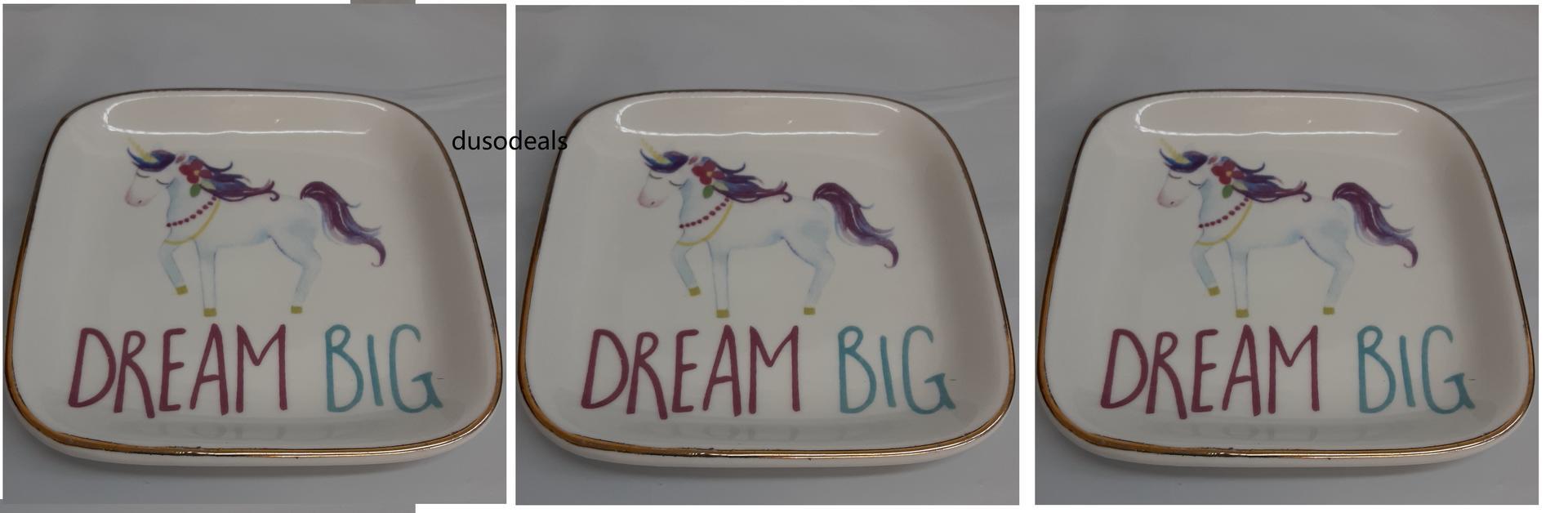 Take your side table or counter space from boring to fantastic when you have with your ceramic "DreamBig" & "Unicorn" Written in shimmering letters on the dish, these are daily words of inspiration . Holding small objects , display the tray on any surface and it will catch the eye of all of your guests.
