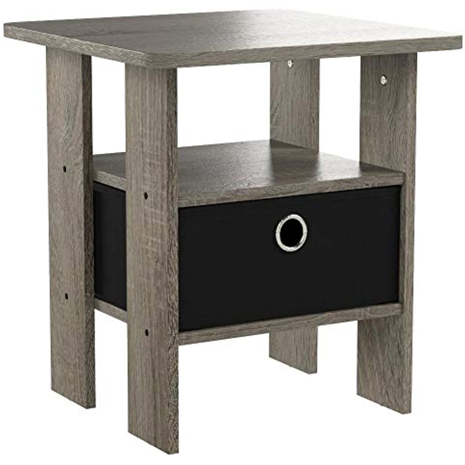 Furinno 11157 End Table Nightstand with Bin Drawer, French Oak Grey- OPEN BOX