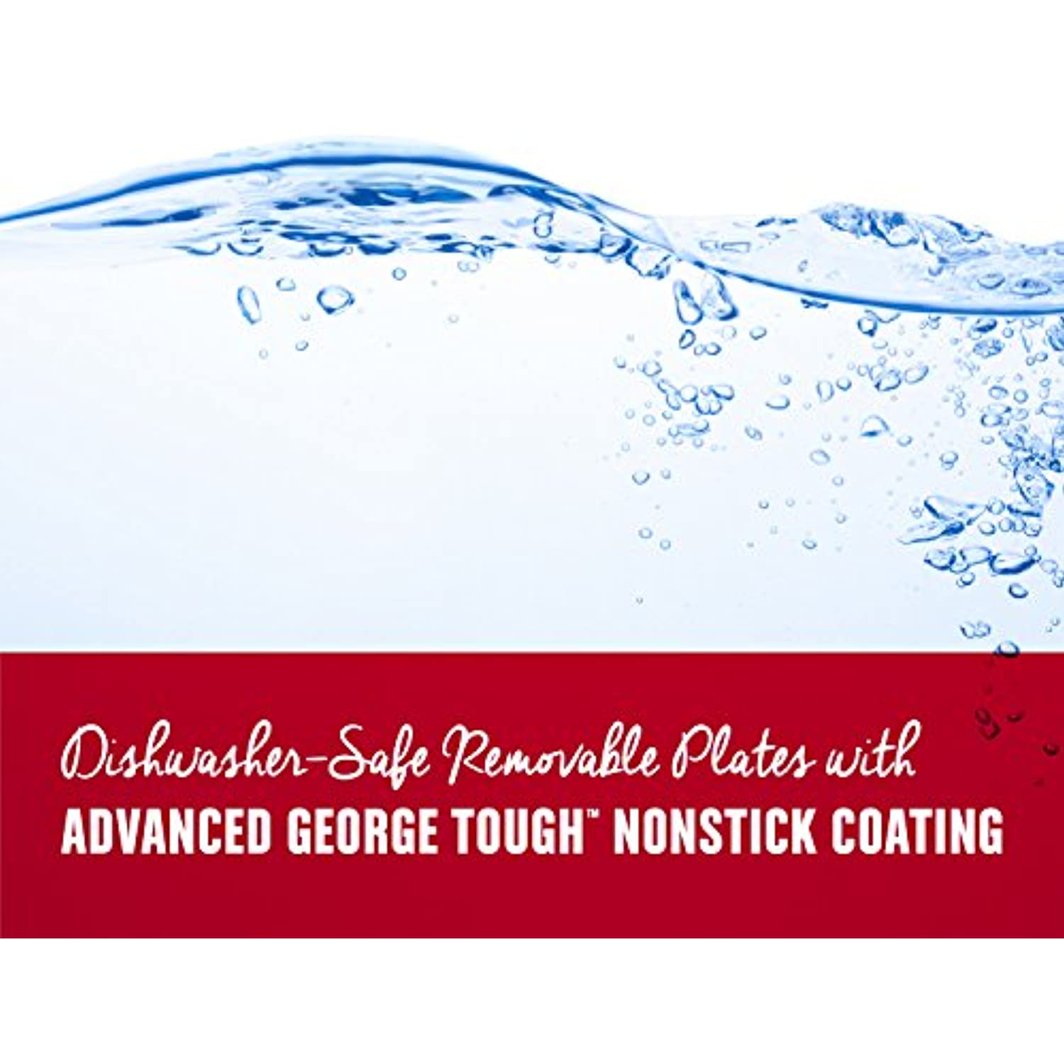 This is how real fast food is made. The George Foreman serving removable plate electric grill and panini press heats up 35% faster* to deliver hot, tasty food that's made your way. Cleanup is just as fast thanks to the dishwasher-safe removable plates. They come with the George tough nonstick coating that holds up through cooking and cleaning, alike. This is the must-have grill for couples or small families who want easy, delicious meals.*compared to current removable plate grill, grp0004**from 1/4lb. Uncooked 80/20 Ground chuck¹compared to standard George tough non-stick coating. Not digital.