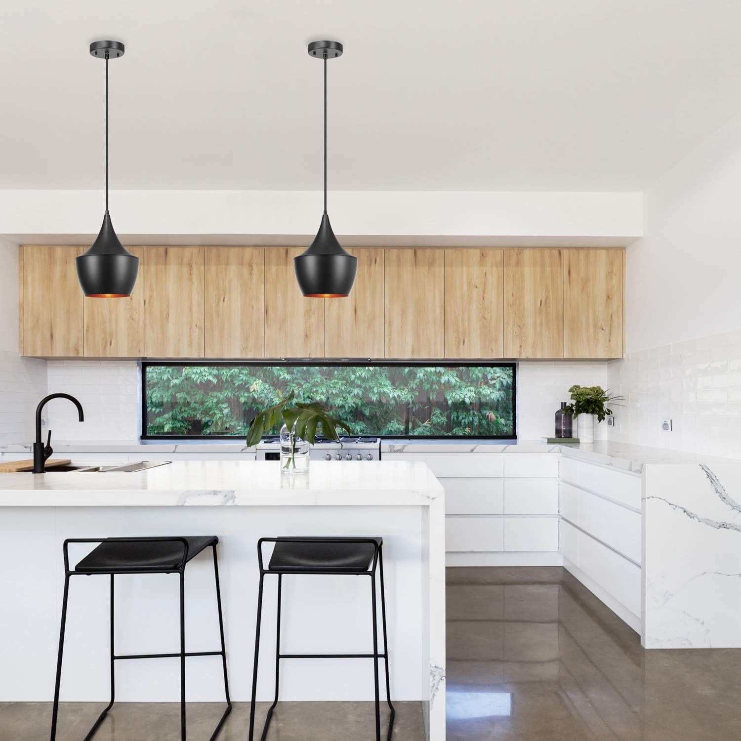 Globe Electric Flo 1-Light Pendant, Matte Black, Gold Interior 63871