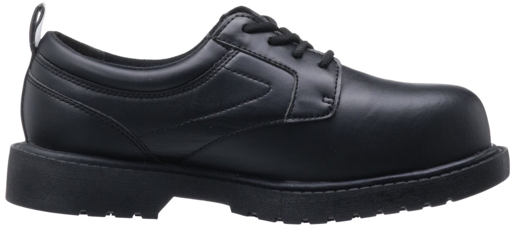 The dressy Grabbers Citation EH Steel Toe Oxford Work Shoe with a soft, flexible, synthetic leather upper is super easy to maintain - just wipe it clean with a damp cloth. A durable, lightweight nylon mesh lining wicks away moisture to keep your feet dry and comfortable all day long. Lightweight foam inserts with sponge rubber heel wedges cushion every step you take and remove easily for washing. Shock-resistant, slip-resistant, rubber lug outsoles are ASTM-rated to protect against electrical hazard, while steel toes are rated to protect against 75 lbs. of impact and compression. An excellent choice in a dressy work shoe. Size 10 1/2, Lining Moisture-wicking nylon mesh, Insole Material Foam insert, sponge rubber heel wedge, Outsole Type Rubber lug, Toe Design Round, Extra Features Shock/slip resistant, Upper Construction Synthetic leather, Toe Style Steel, Color Black, ASTM Approved Yes. Soft, flexible, synthetic leather upper for easy maintenance ASTM rated for protection against electrical hazard and 75 lbs. of impact/compression Moisture-wicking nylon mesh lining to keep feet dry Lightweight foam inserts with sponge rubber heel wedges for cushioning Rubber lug outsoles for shock- and slip-resistance