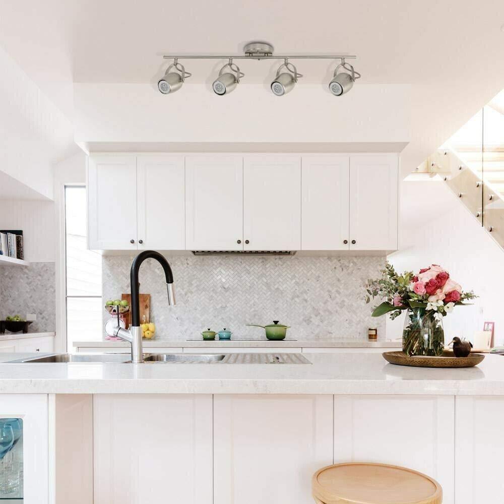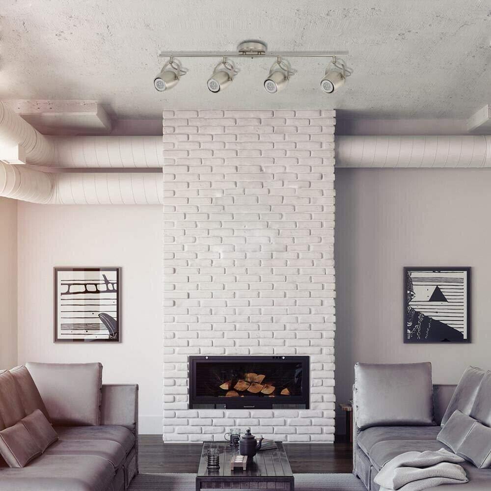 The Brushed Nickel Finish of this Hampton Bay track light will be great for the existing decor trend in your home. LED bulbs are included with this light and it is ideal for both task and general lighting. Use this product to replace many types of lighting fixtures such as vanities, sconces and flush mounts. The LED product has a long life and reduces energy costs. Great for all decor trends in the home Task and general lighting Multi-directional heads 2169-Lumens 83+CRI 3114K warm light 4 x GU10 LED bulbs included