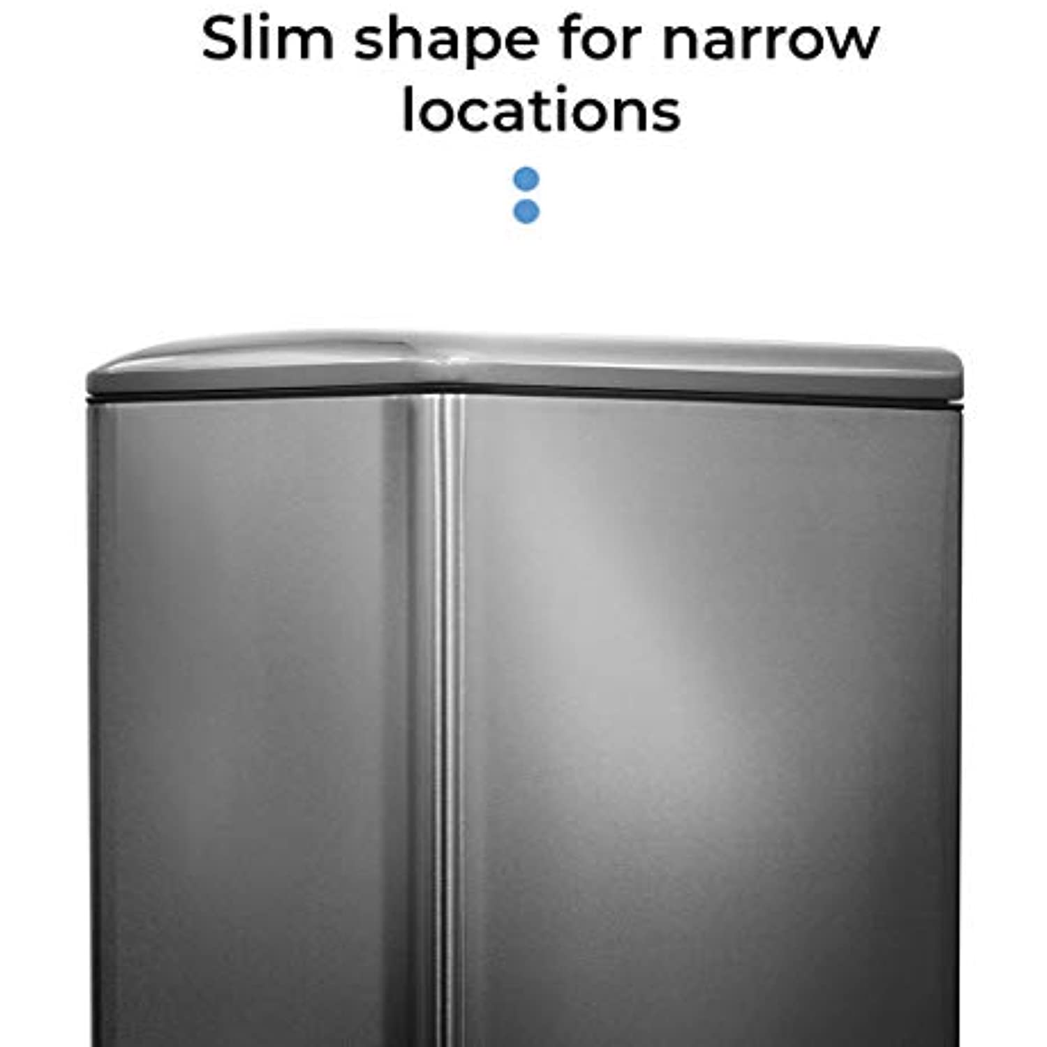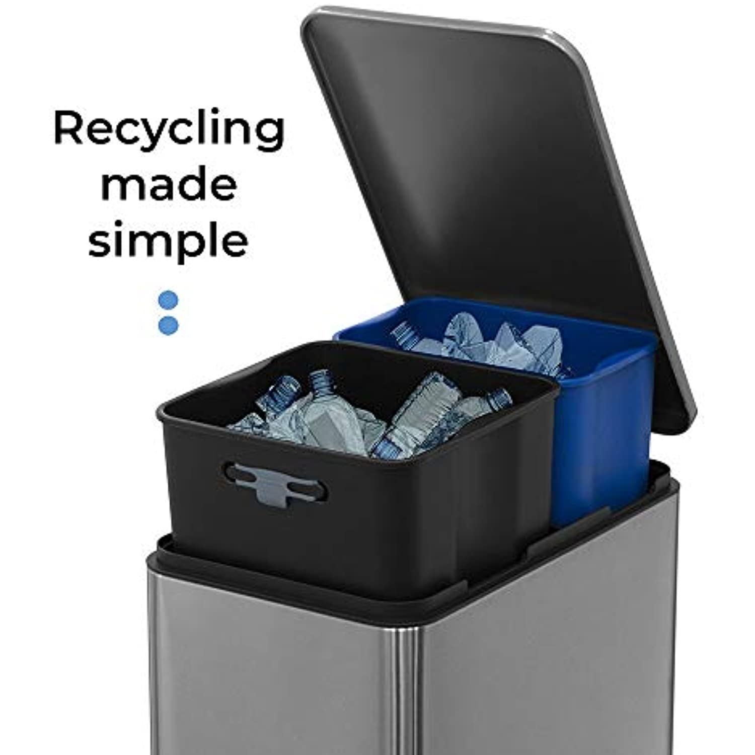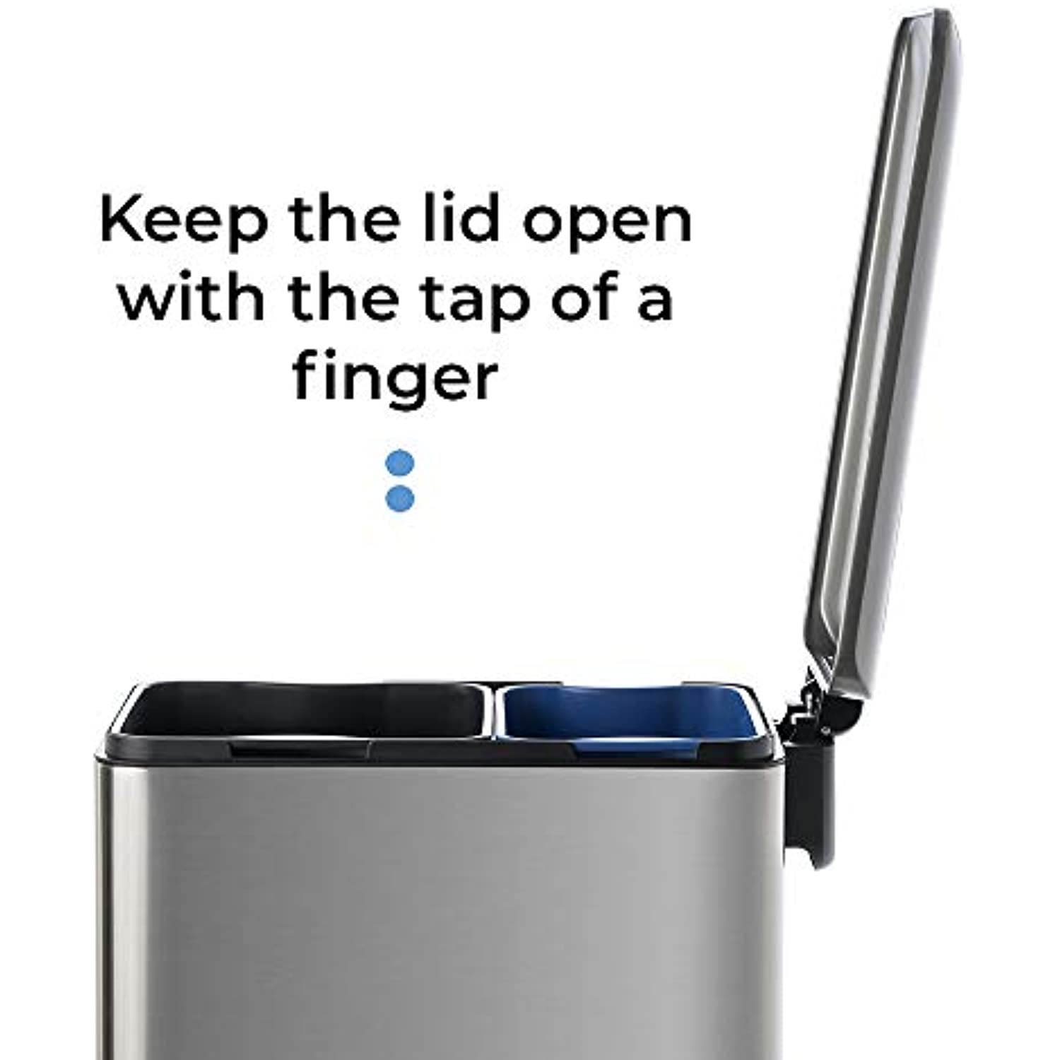The clear coated stainless steel finish with the timeless design makes this 50 liter dual compartment trash bin ideal for placement in the kitchen, office, or virtually anywhere in the home where you need waste management.