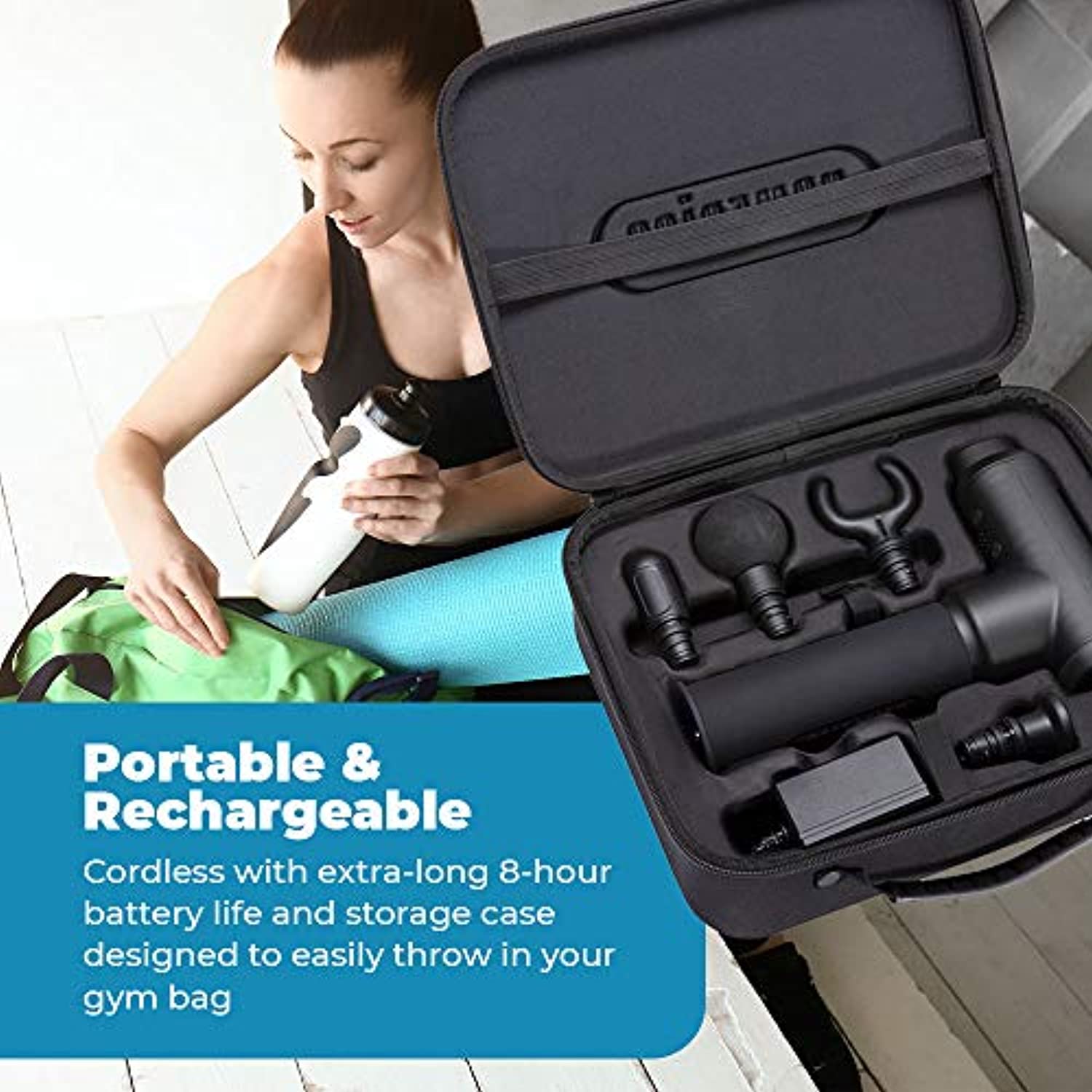 - MUSCLE MASSAGE: The high-intensity, spot-specific percussion head uses repetitive strokes to help relieve sore and stiff muscles for increased range of motion.