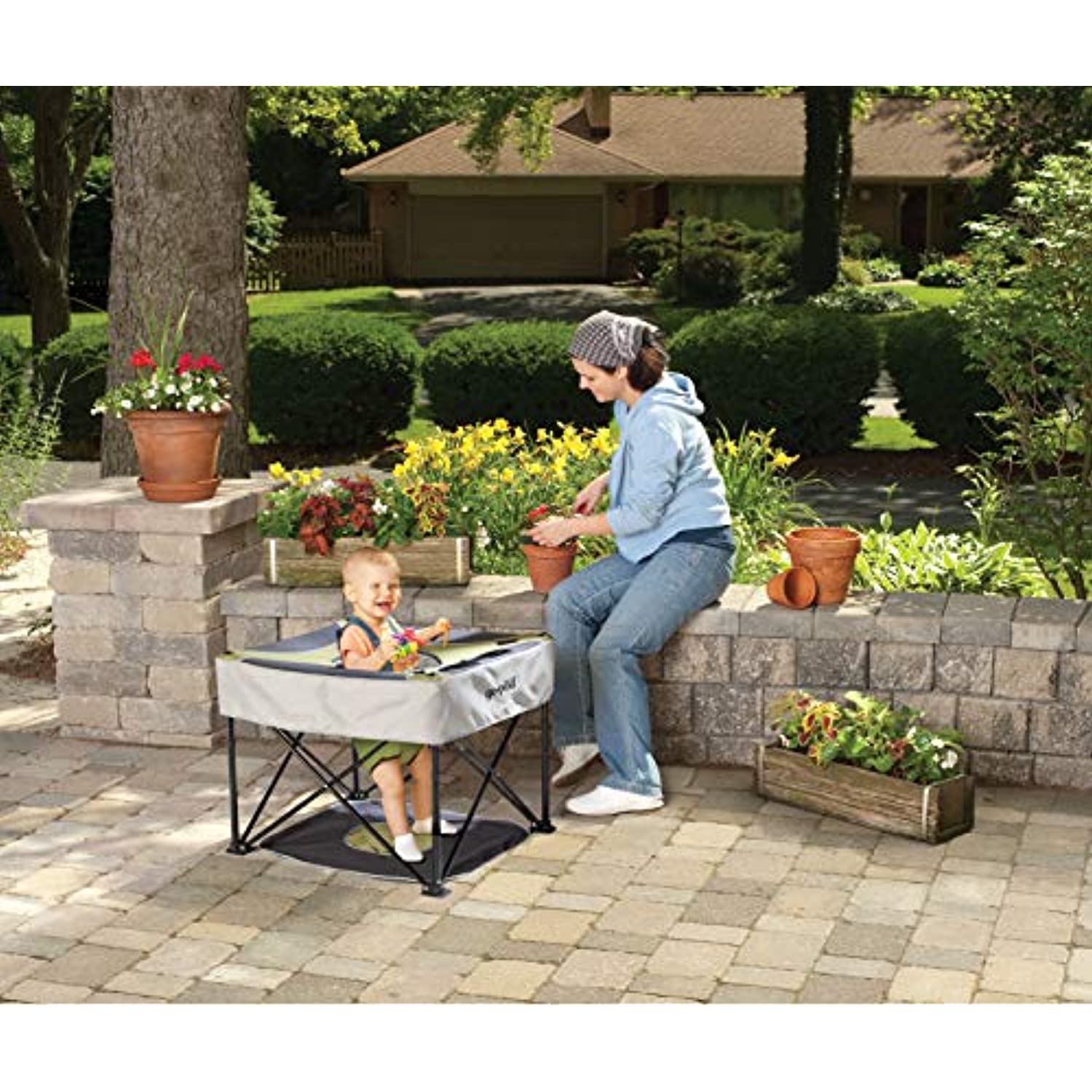 Fold and go design makes the Go-Pod the perfect choice for use both indoors and outdoors. Easily unfolds and can be moved from room to room. The KidCo GoPod is a lightweight and portable Activity Center to keep your child safe and entertained at home or "on-the-go". Simply fold up, put it in a handy carrying bag with storage and take it with you anywhere you go. The KidCo GoPod Portable Baby Activity Station features a floor pad to keep little one’s feet from touching undesirable surfaces and a locking button to ensure the safety of your baby. It is a great item to have for your growing baby thanks to the four seat height positions. It is easy to adjust so it can grow with your child. Five nylon toy loops located in different places at the top of the GoPod hold your baby's favorite toys in place and within reach. It also sports a drink and snack holder so your child will have everything they need to stay safe and entertained while you relax a little bit. Folded dimensions: 6.5"L x 6.5"W x 29.5"H. Open dimensions: 24"L x 24"W x 19.5"H (at lowest seat level) . 100% Polyester fabric