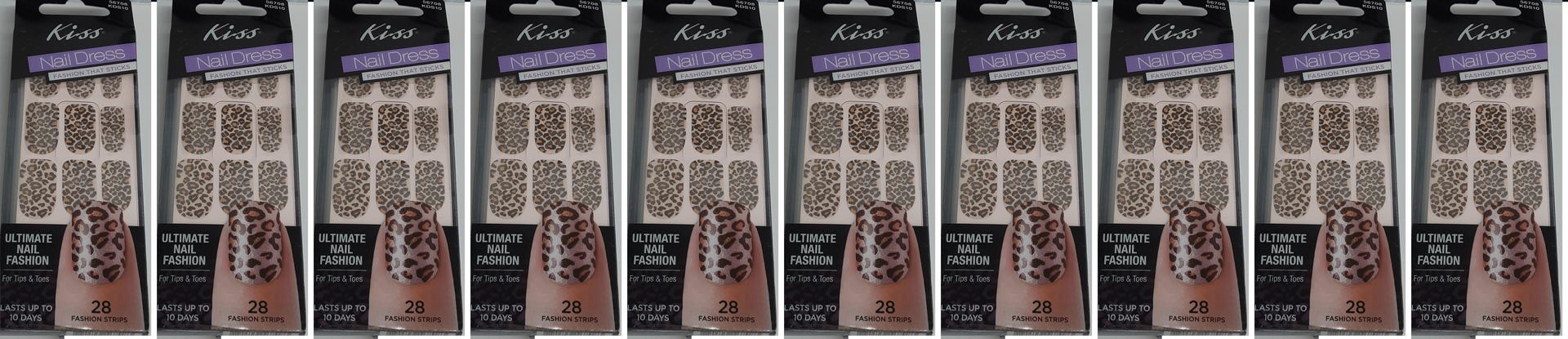 Kiss Nail Dress 28 Fashion Strips 56708, Leopard Design, LOT OF TEN- New