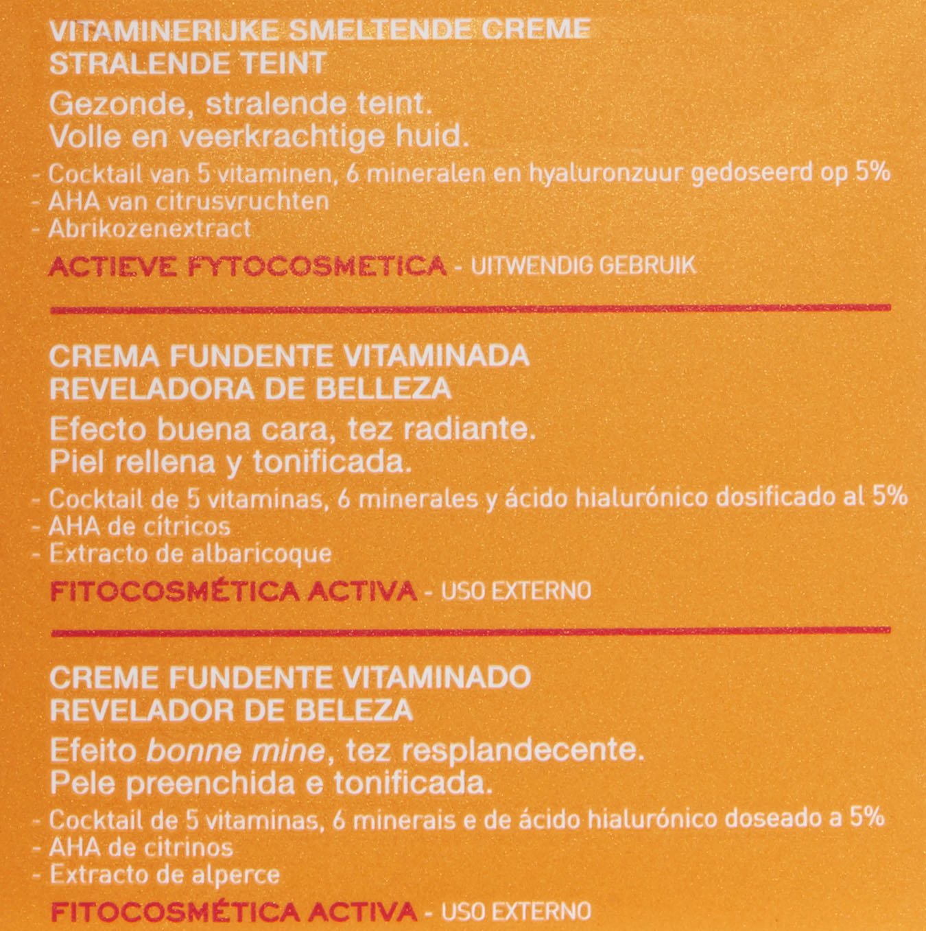 This anti-wrinkle cream helps to maintain skin moisture while providing glowing radiance. It perfectly reduces visible signs of fatigue and tones the skin. The product has a fresh and creamy texture which ensures comfortable application. It contains a rich and nourishing cocktail consisting of 5 vitamins and 6 minerals. Eliminating emerging wrinkles and fine lines, it revitalizes the skin and gives it a luminous, unified and fresh appearance. Plumps and refines, brings vital hydration and supports sagging and tired-looking skin.
