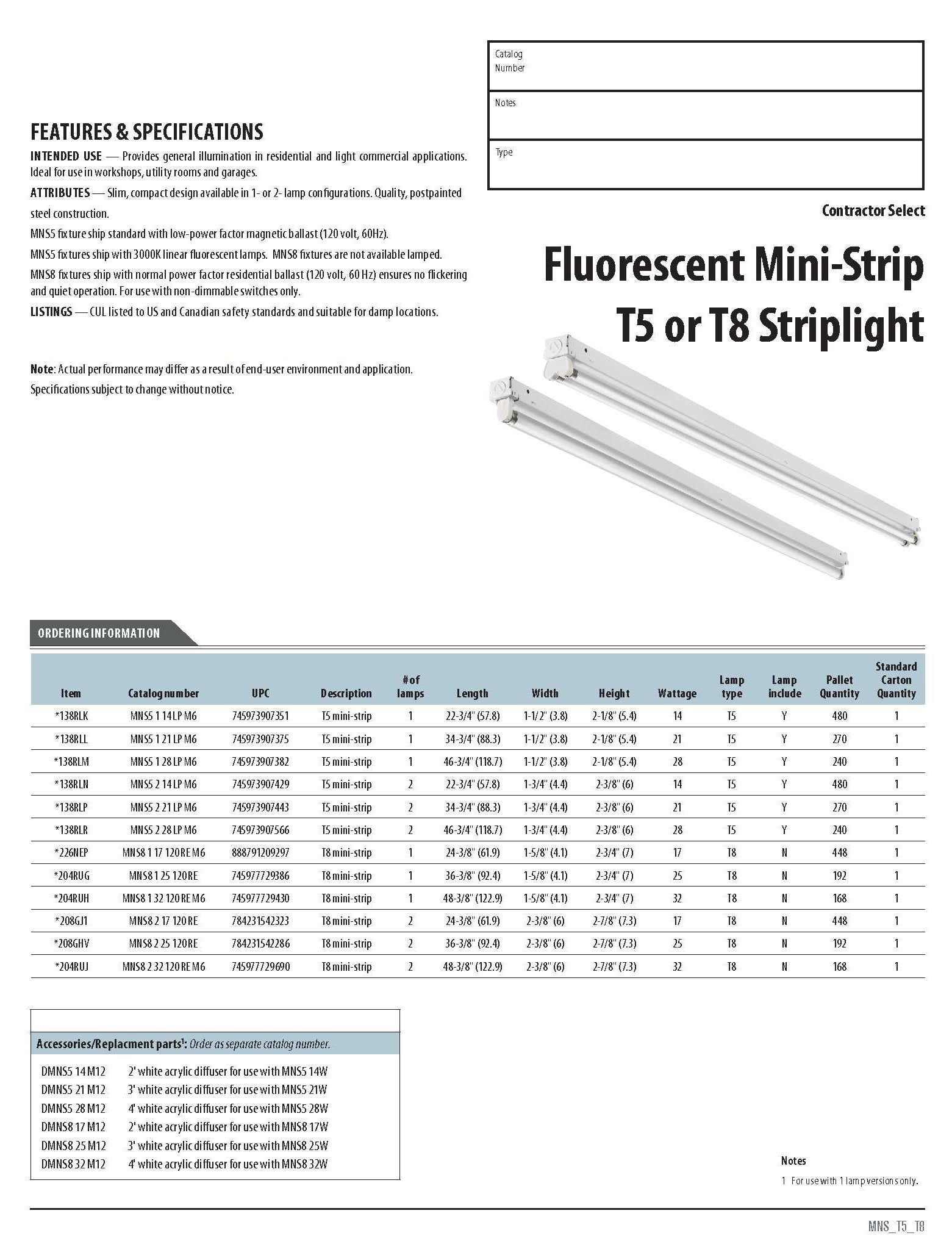 The Lithonia Lighting mini strip utility fluorescent light features a slim, compact design. It is perfect for closets, garages and attics and it can be mounted on the wall or ceiling. The fixtures utilize t8 bulbs that are not included and have a residential electronic ballast which is suited for residential applications.