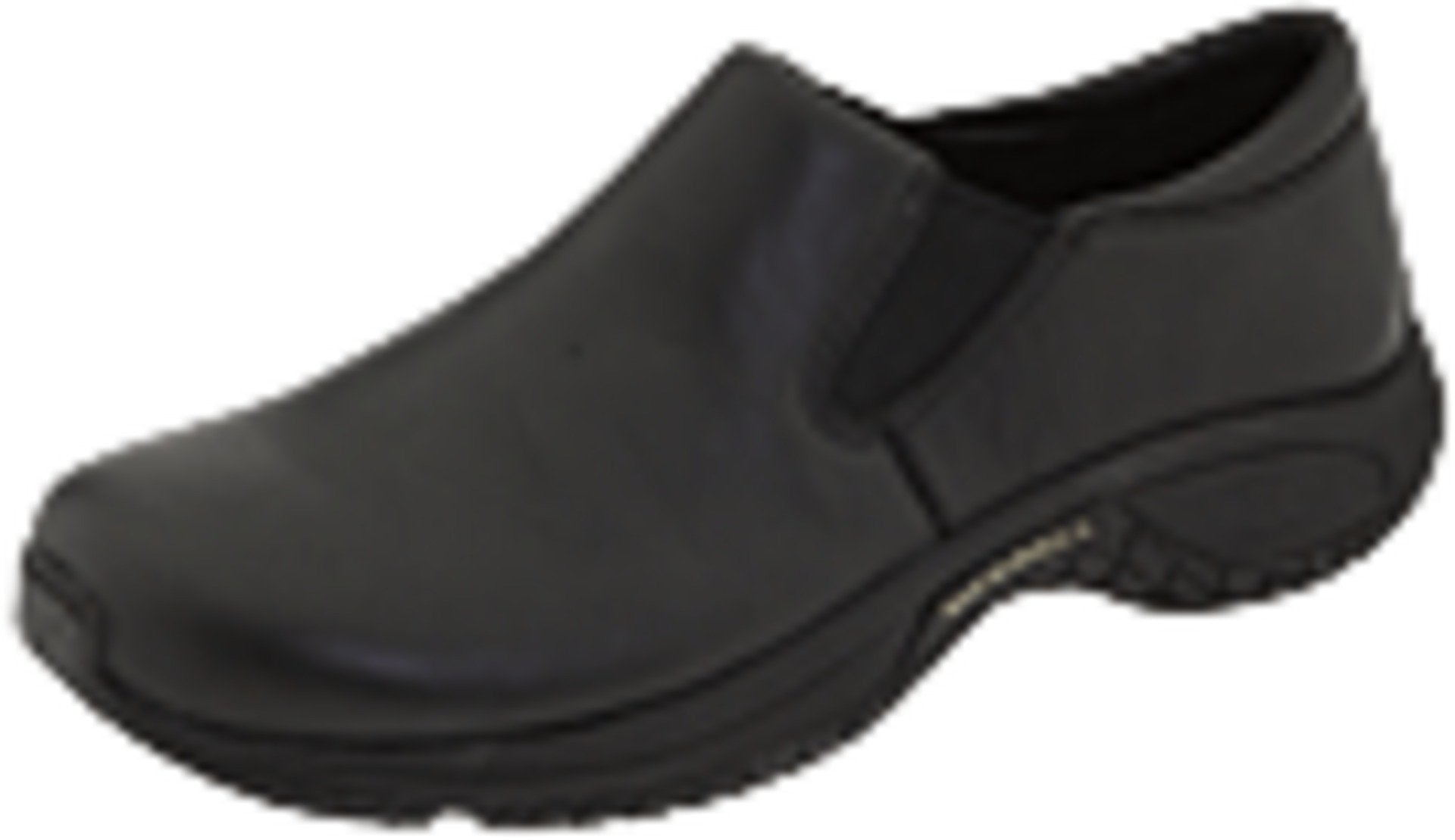 Merrell Men's Encore Moc Pro Slip-On Shoes deliver an ideal combination of cushioning, support and traction for all-day comfort If you're on your feet all day at work, try this classic slip-on moc packed with Merrell technology. You'll come home feeling better than you would in ordinary footwear?Çöfrom your feet all the way up to your back! Upon initial heel strike, the Merrell Air Cushion?« in the heel of the midsole centers the heel for stability and absorbs shock. The nylon injection molded arch shank supports the midfoot and arch, while the slip-resistant rubber outsole helps you stay steady on your feet. Double elastic inserts allow you to slip into the waterproof leather upper with ease, and a rolled collar at the heel enhances the fit. Click here to view the slip-resistant outsole.