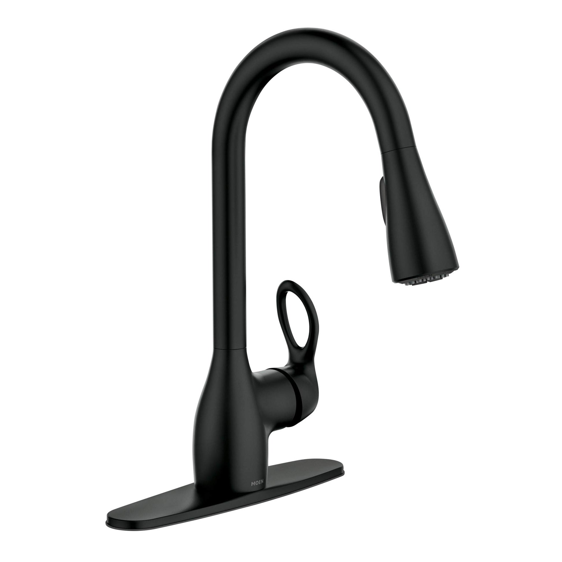 Product Features: Faucet body constructed of metal to ensure durability and dependability Covered under Moen's limited lifetime faucet warranty Finishes resist corrosion and tarnishing through everyday use - finish covered under lifetime warranty Moen sets the standard for exceptional beauty and innovative reliable design Single handle operation for ease of use Pullout spray faucet head with 68" hose enhances faucets versatility Spout swivels 120-degrees providing greater access to more areas of the sink High-arch gooseneck spout design provides optimal room under the faucet for any size task Includes optional escutcheon (cover plate) - for sinks with 3 faucet holes ADA compliant Low lead compliant - faucet meets federal and state regulations for lead content Eco-friendly product – using at least 30% less water than standard 2.2 GPM faucets, while still meeting strict performance guide lines Product Technologies / Benefits: Reflex™: A technological innovation created based on input from actual faucet users, Reflex™ is made to work the way you do. Featuring exceptional range of motion, the spray wand on Reflex™ faucets swivels to optimize maneuverable range. Only pulldown faucets with the Reflex™ system will retract back to the docked position from any distance without assistance. Compared to other pulldown designs Reflex™ will also make the spray head up to 40% easier to unlatch. Spot Resist™ Finish: Spot Resist™ stainless finish resists fingerprints and water spots for a cleaner looking kitchen. Duralast Cartridge: An exciting new proprietary cartridge design that offers a smooth feel and reliable operation of a new faucet from the first use to the last use. This new cartridge combines innovative engineering and the highest quality materials. It surpasses conventional durability standards to withstand the toughest conditions, including hard water
