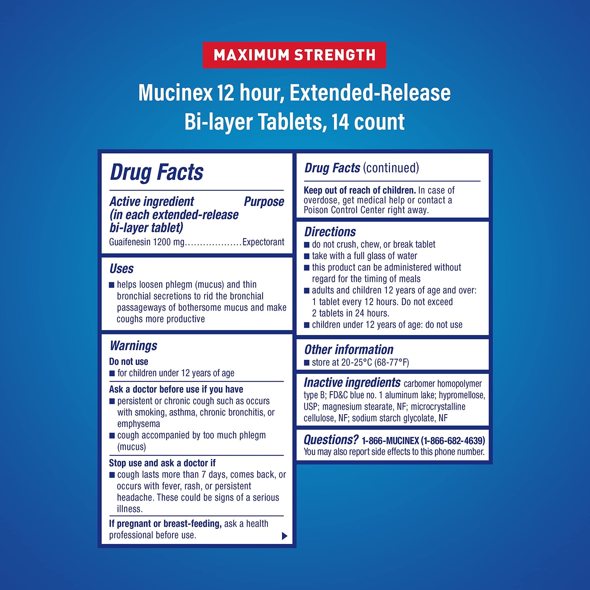 Mucinex Max Strength Expectorant 1200mg 12-HR Relief 14 Tabs Exp 2/2025