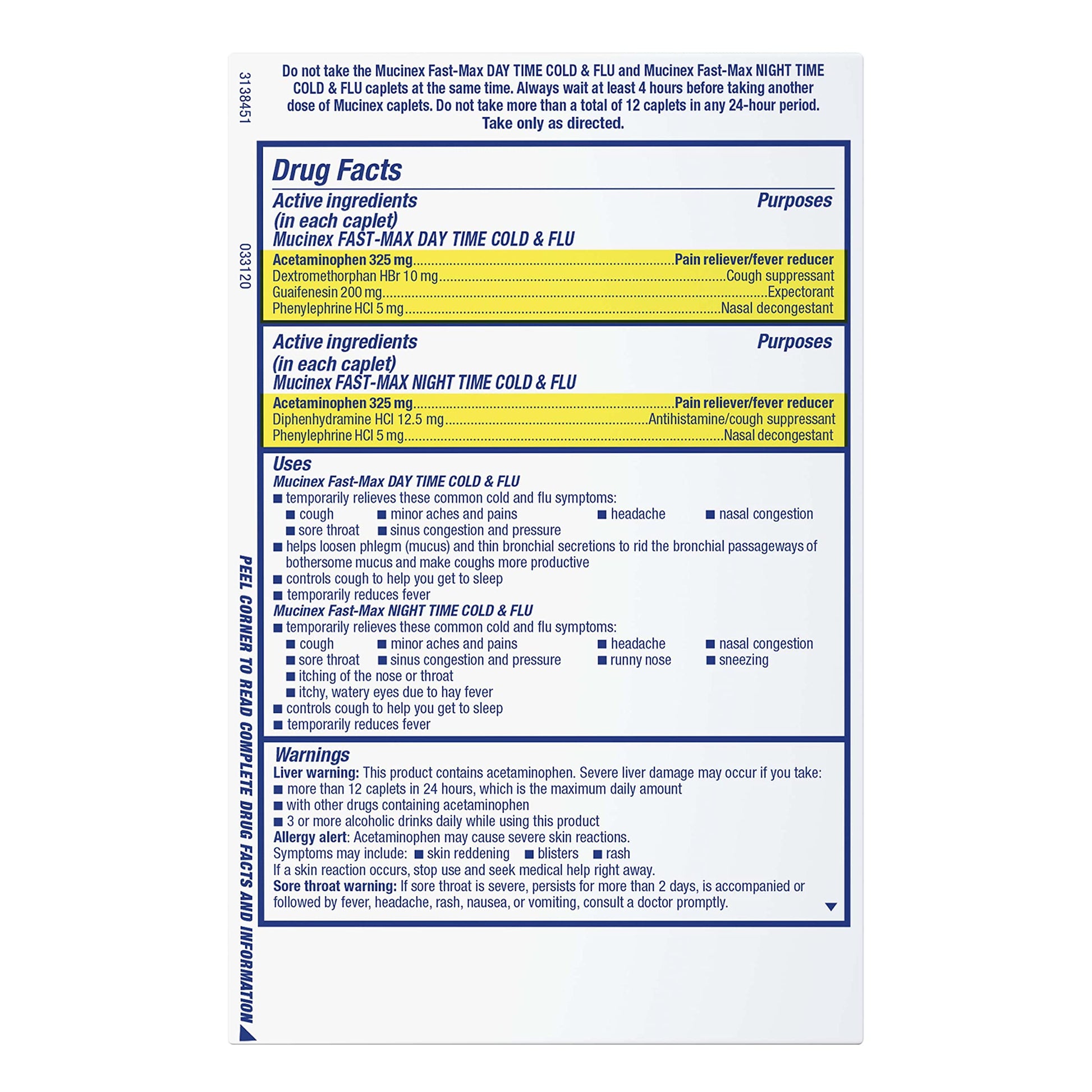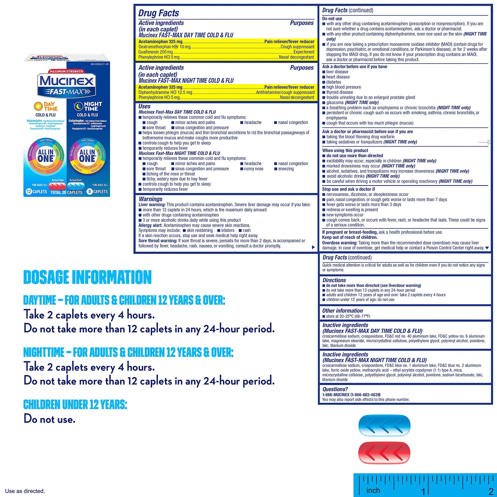 Mucinex Max Strength Fast-Max Day& Night Cold& Flu Caplets - 20 Count Exp: 2/23