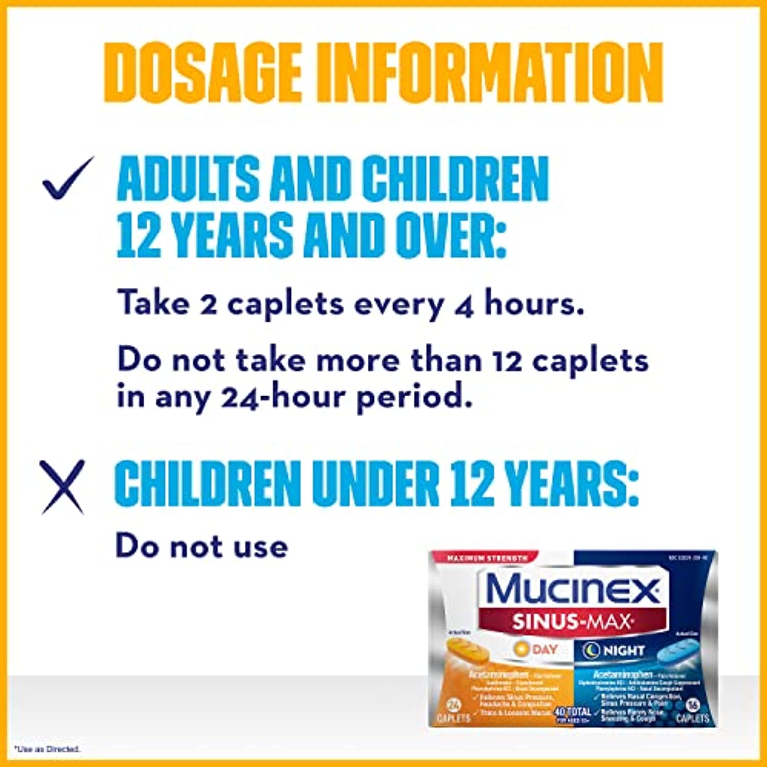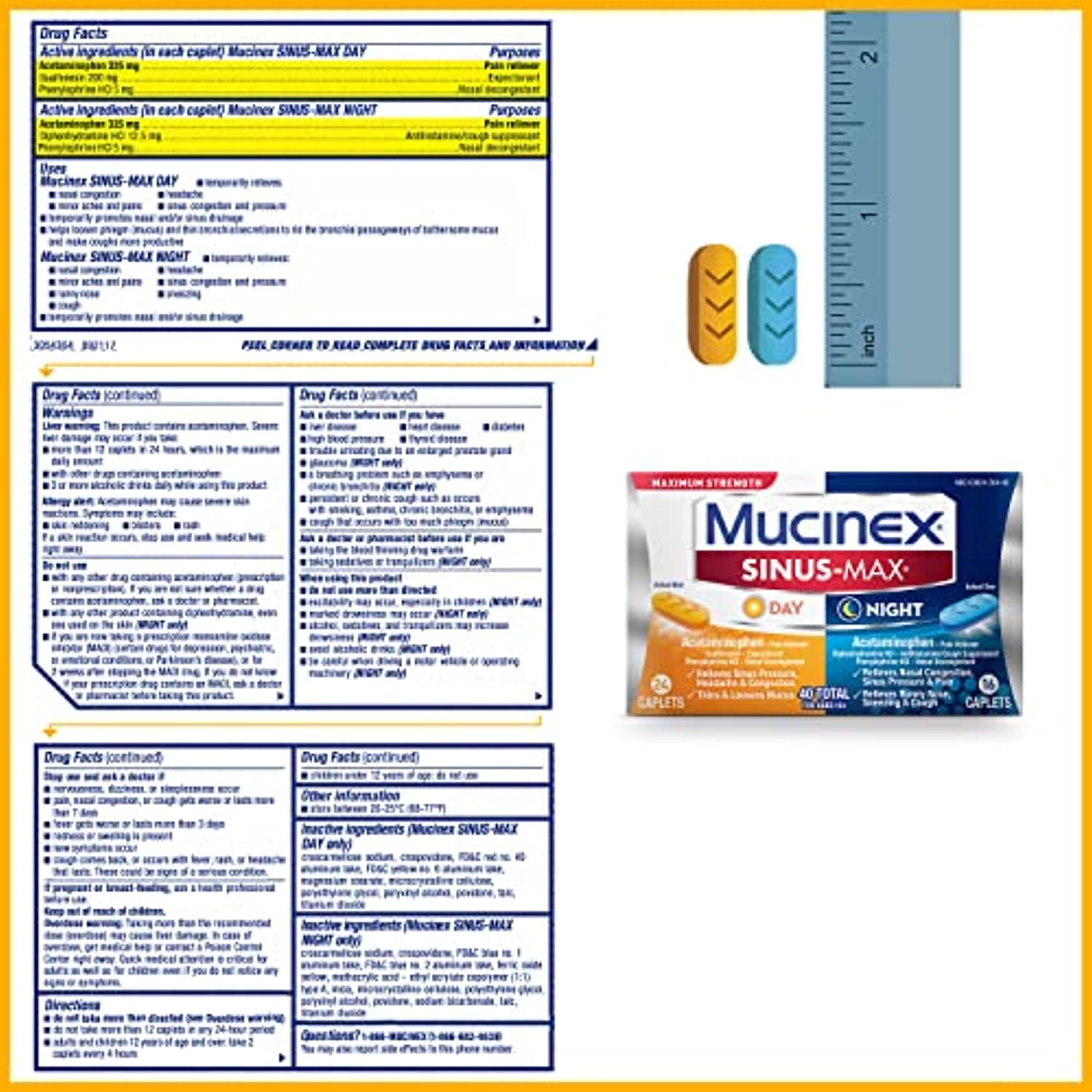 Mucinex Sinus-Max Maximum Strength Day and Night, Sinus Symptom Relief, 40 Count