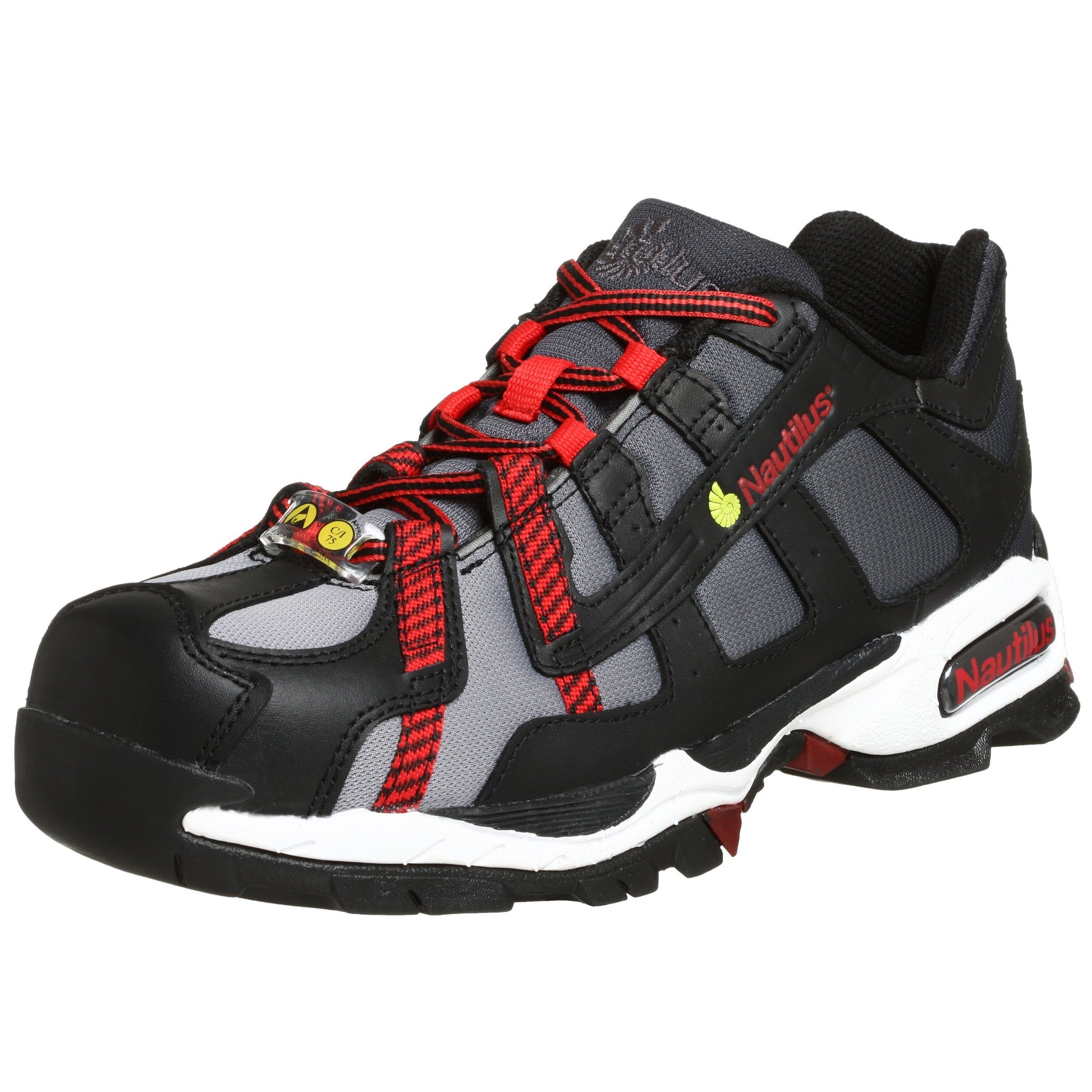 Nautilus 1317 ESD No Exposed Metal Safety Toe Athletic Shoe,Black/Silver/Red,8 W