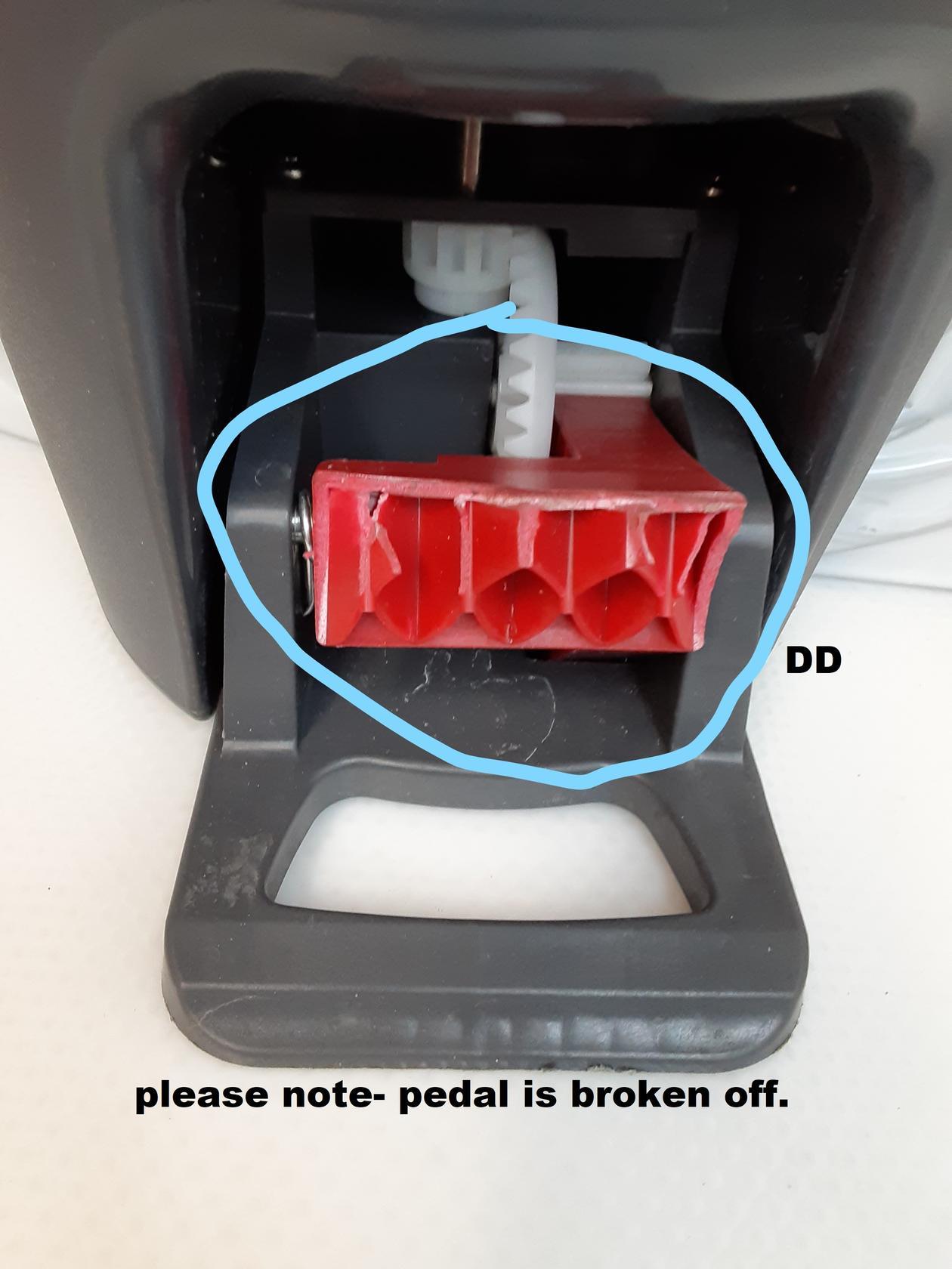 PEDAL ATTACHED TO BUCKET IS BROKEN, BUT WORKS FINE STILL.