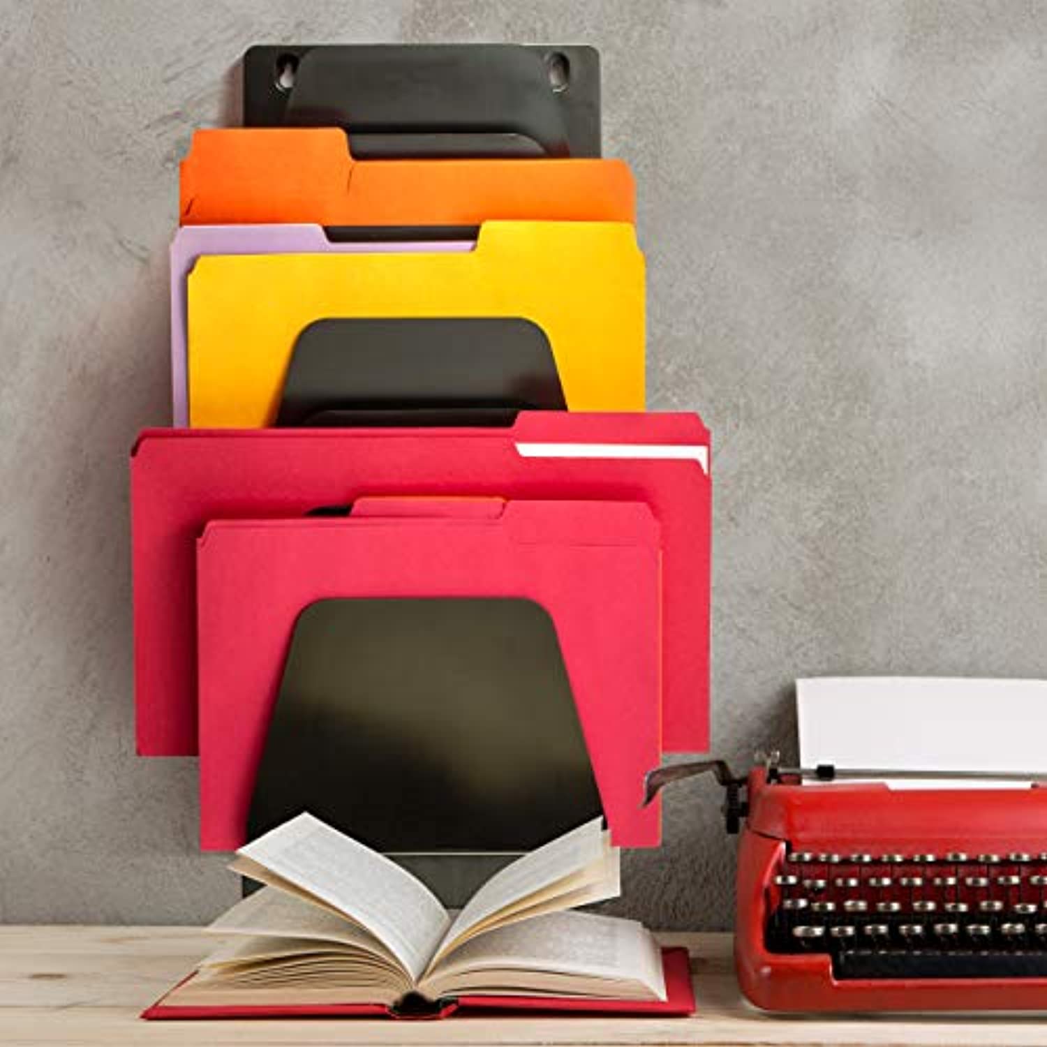 Waterfall filing system for file folders keeps them in view. Can store Letter/A4, legal documents and file folders with ease. This wall file holder can save valuable desktop space and keep all the files you need handy. Minimal assembly required.
