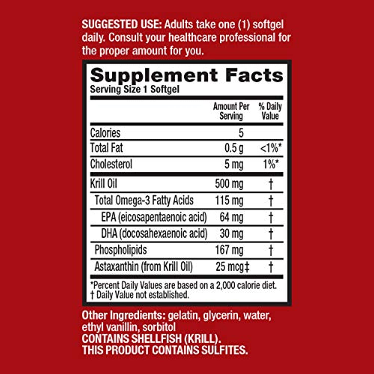 Omega-3 Krill Oil 500mg - Megared Extra Strength softgels (40 count in a Box) - Krill Oil No fishy aftertaste