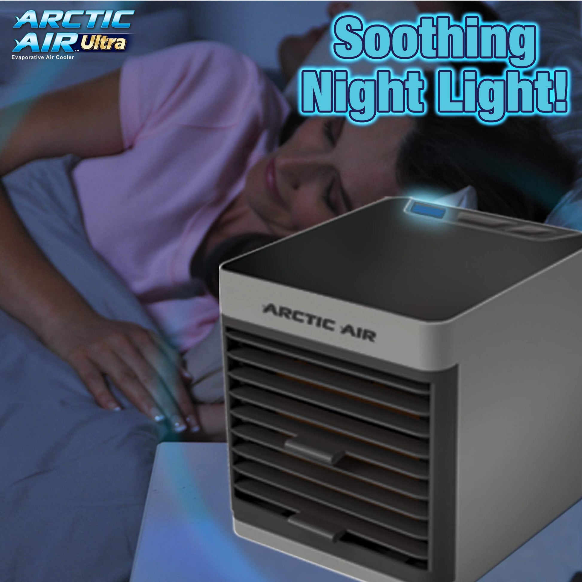 Are you trying to stay cool and comfortable, but you're feeling hot and sweaty? Running the air conditioner all day is noisy and expensive! And fans only blow the hot air around you! Introducing the new and improved, Arctic air Ultra, the Personal space cooler that transforms hot spaces into cool refreshing places for just pennies a day! Now better than ever with twice the cooling power! Arctic air Ultra cools, humidifies, and purifies any personal space! The secret is hydro-chill technology, that pulls in hot air from the room through its Evaporative air-cooling filter and turns it into cool, refreshing air instantly! Simply add water to the top fill water tank, press the button and begin feeling cool and refreshing air! Arctic air Ultra can run up to 10 hours per fill and with twice the cooling power you'll stay cool and comfortable for hours! The new and improved Evaporative air Filter is made from a sponge material with an coating! Arctic air Ultra's multi-directional air vent is adjustable to point the air in the area you want! Three fan speeds allow you to customize your cooling experience with low, medium and high settings. The whisper-quiet fan and soothing night light make it perfect to use throughout the night for a comfortable sleep! Arctic air Ultra is, energy efficient and freon-free! Never worry about a costly electric bill again! Best of all, Arctic air Ultra's lightweight and portable design lets you take it anywhere! Enjoy cool and fresh air in the living room, den, bedroom, office, kitchen, bathroom basement and more! Even bring Arctic air Ultra outdoors! Enjoy a cool breeze on the hottest days! Cool any space fast and easy with Arctic air Ultra!
